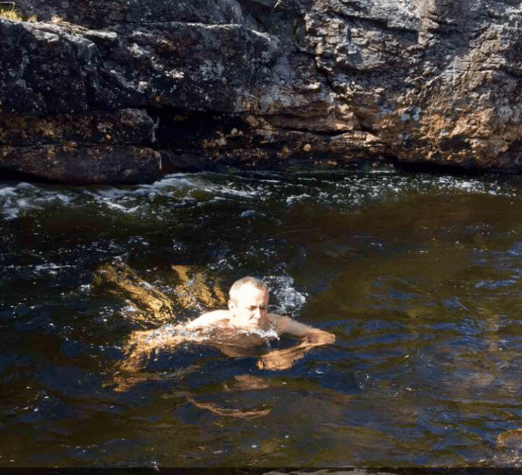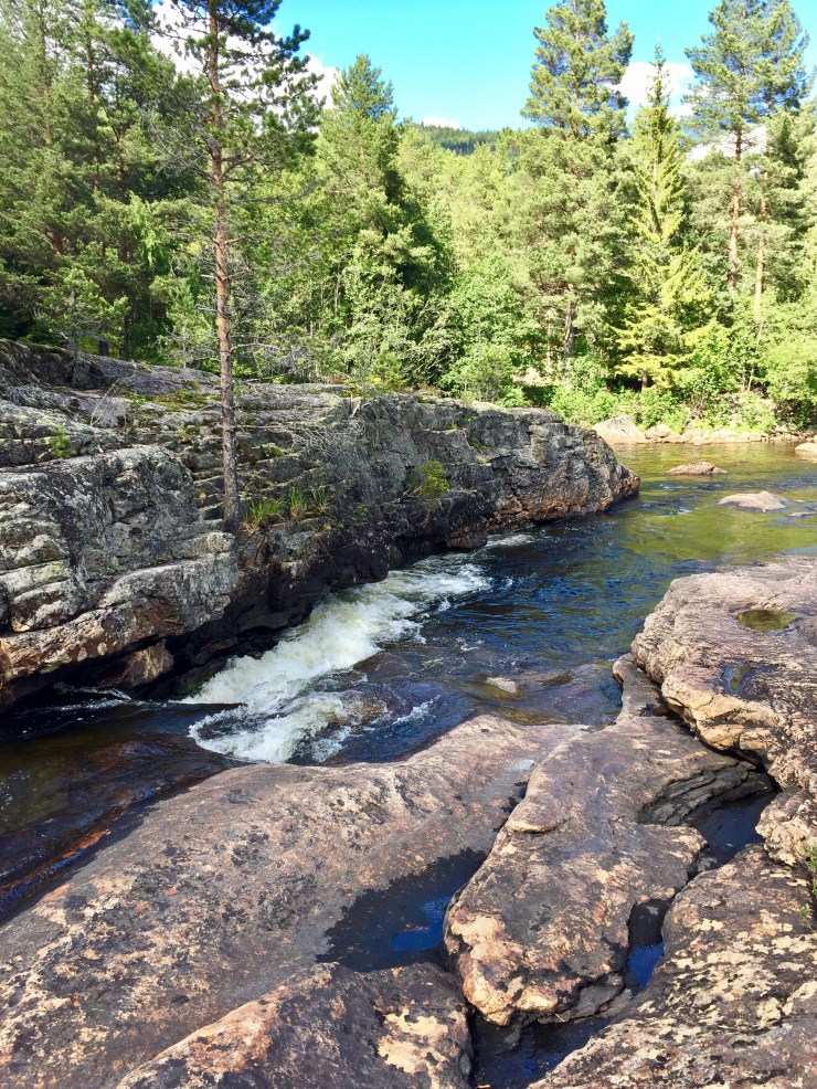 Etter inntrykk både fra Madonna og Chr. Skredsvik var det deilig med ett avkjølende bad i elven på vei opp til Vestbygda. Det er en liten parkeringsplass rett ved veien og bare noen meter å gå til flere fine bademuligheter. Det blir ikke det varmeste vannet i slike elver men det er behagelig når varmen kommer tilbake.