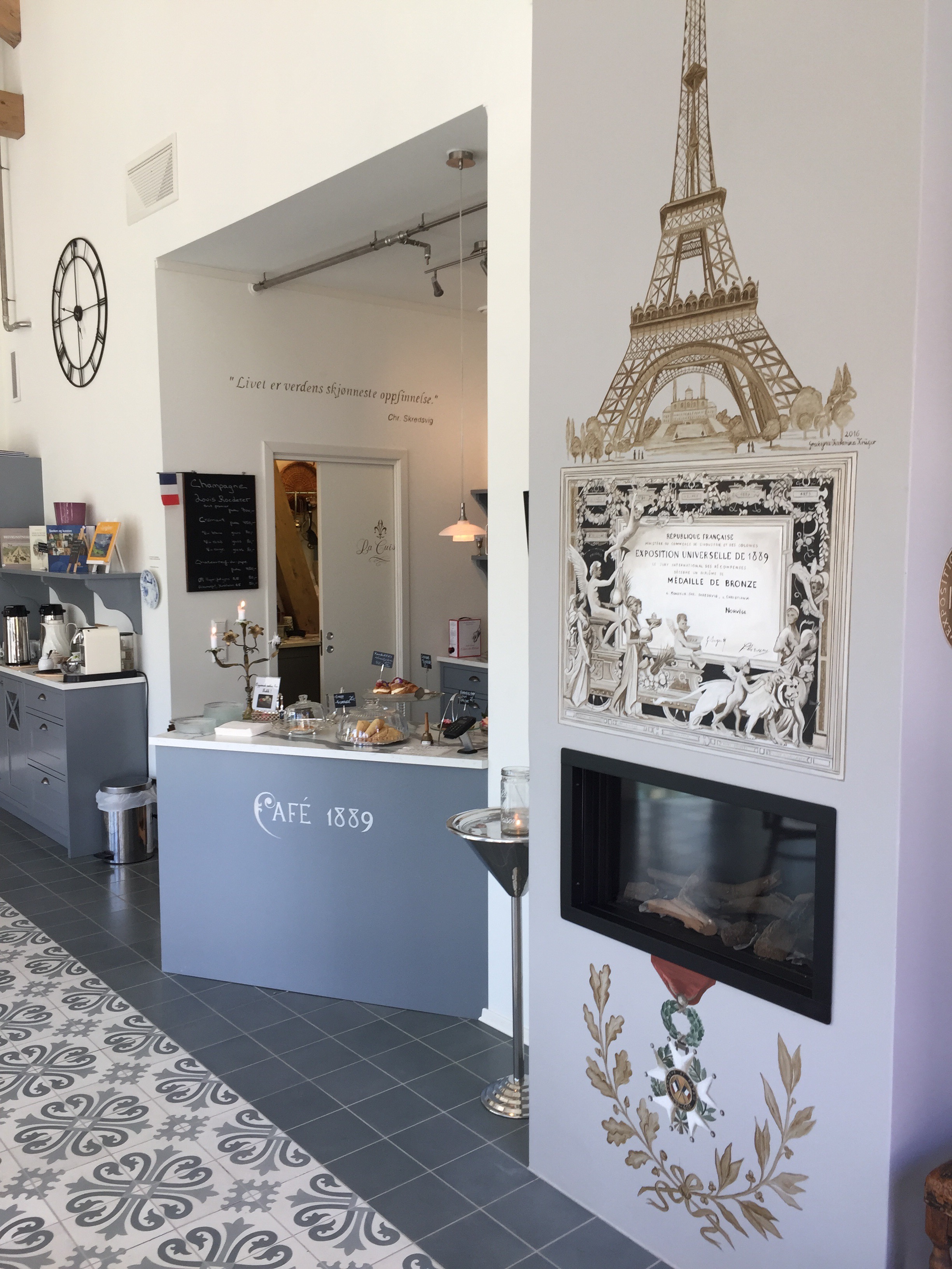 Med navnet Cafe 1889 har de latt seg inspirere av kunstnerens tid i Paris og spesielt hans rolle som dommer i verdensutstillingen nettopp dette år. Denne verdensutstilingen er altså det som har gitt oss blant annet Eifeltårnet. Så her er det mye historie og en virkelig flott opplevelse å besøke, og det er lov å la seg friste.