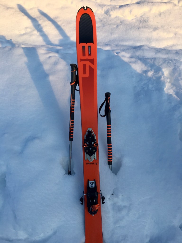 Så var det å fjerne fellene som hadde vært uunngåelige på vei opp, men nå trengte vi den gli effekten vi kunne få. Strekningen ned til varden på Finlandsfjellet var slak og krevde både staking og litt ski gange. Fra varden og ned var det super løs snø kjøring. Etter en del svinger fikk jeg mestringsfølelse og var klar for mye mer når vi kom ned til oppkjørte løyper igjen. Randonee ski som gir både fjellski og slalåmski er helt suverent for en slik tur og dette gav mersmak.