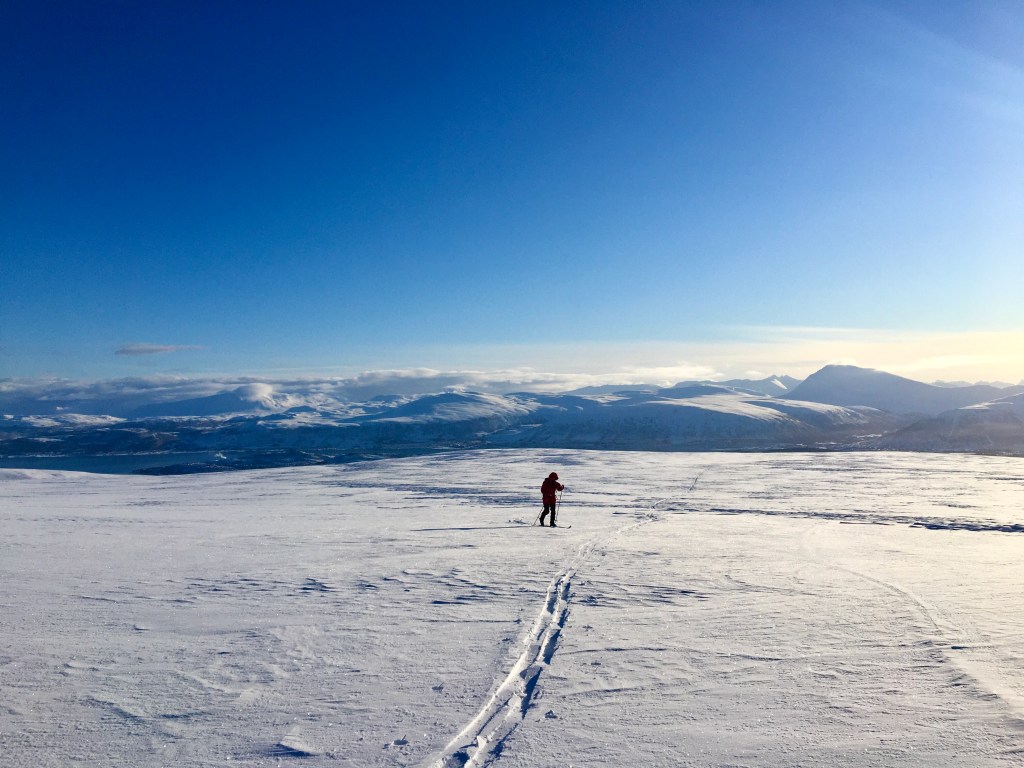Hver gang jeg har vært i Tromsø, har jeg hatt ett ønske om å bestige en av toppene som sees fra byen. Tråkke opp fjellsiden med randonee ski, nyte utsikten på toppen og oppleve pudder kjøring på vei ned igjen. Denne gang planla Jakob og jeg en søndagstur, og for en dag det ble. I tillegg var det en veldig god følelse når vi fra flyplassen, på vei hjem til Fredrikstad, kunne se toppen vi hadde besteget.