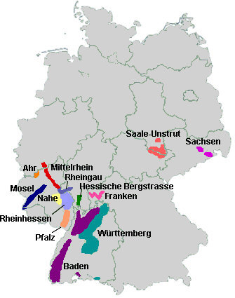 De fleste vinområdene befinner seg sør vest av Tyskland, hvor klimaet er noe varmere.