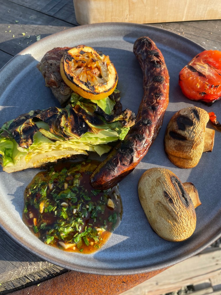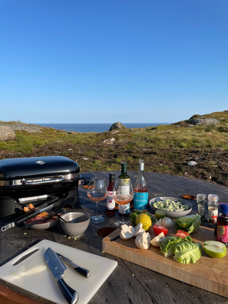 Med slike omgivelser som vi har rundt hytta er det en fantastisk følelse å lage maten ute i det fri, og aller best er det når du kan tilbrede ferske og lokale råvarer. Ingenting kan sammenlignes med smaken av fersk fisk som vi flere ganger har handlet på fiskemottaket i Sørvågen. Vi har nytt den gode smaken av havets ferske råvarer, fanget av erfarne fiskere, handlet av de imøtekommende lofotværingene som har gjort denne regionen til sitt hjem. De ønsker deg velkommen med åpne armer og deler av sin unike kultur og gjestfrihet.